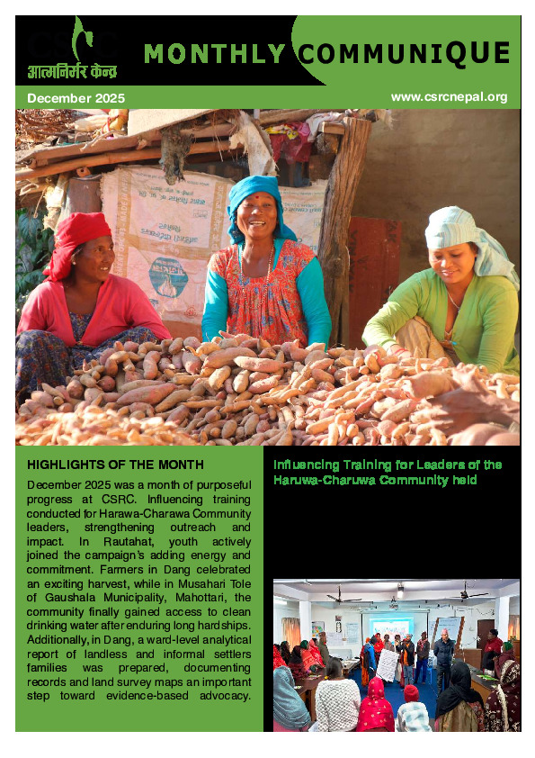 Monthly CommuniqueBy CSRC NepalJanuary 21, 2026