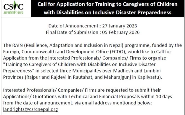 Call for Application AnnouncementsBy CSRC NepalJanuary 28, 2026CfA Notice_ Caregivers TrainingDownload