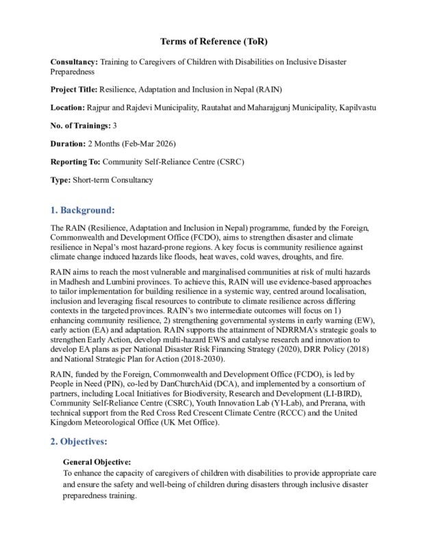 ToR for Consultancy AnnouncementsBy CSRC NepalJanuary 28, 2026TOR_ Training to Caregivers of Children with Disabilities_ FinalDownload