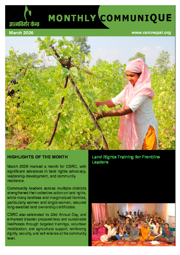 Monthly Communique March 2026 Monthly CommuniqueBy CSRC NepalApril 12, 2026Monthly Communique March 2026Download
