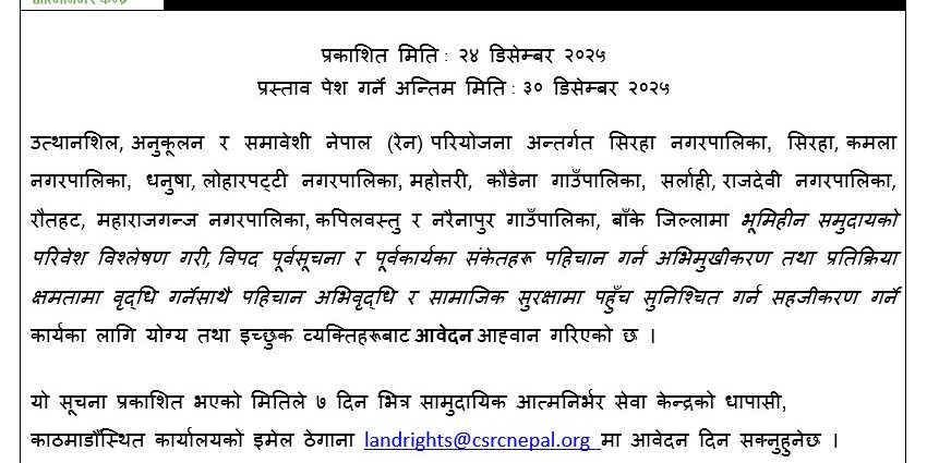 Dec242025 Facebook X Pinterest LinkedIn TOR_Local Facilitator MobilizationDownload Category: AnnouncementsPost navigationPreviousPrevious post:Invitation for Sealed ProposalNextNext post:Call for Applications for Historical Flood MarkingYou Might Be InterestedInvitation for Proposal for Grain Storage DesignDecember 24, 2025Call for Applications for Historical Flood MarkingDecember 24, 2025Invitation for Sealed ProposalDecember 22, 2025